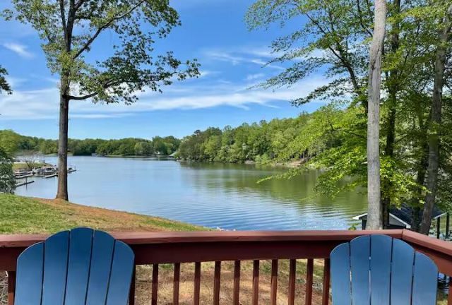 Imagine waking up to stunning lake views from nearly every window in this beautifully updated home, decorated as a 4-bedroom retreat. Completely turnkey, currently operating as a short-term rental, with furnishings available if desired, it's ready for effortless living & entertaining. The main level boasts a bright, open living area with high ceilings, a spacious kitchen, & dining area--perfect for everyday living or hosting guests. The lower level includes a fully equipped kitchen & living area, ideal for multi-generational living, guests, or lake-side gatherings.