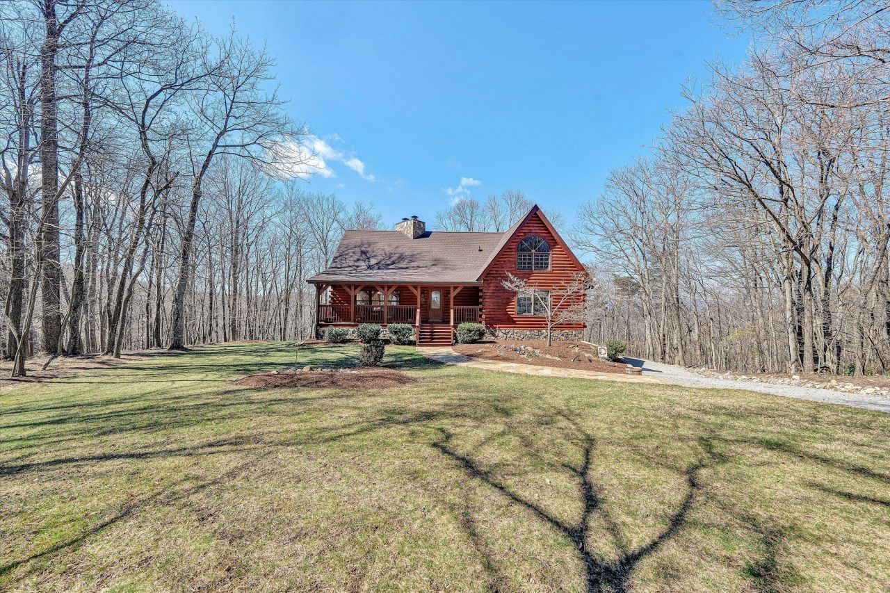 Exquisite 11/2-story log home set stately on 5.78 scenic acres in Roanoke County Designed to embrace the surrounding landscape and spectacular sunset mountain views. Inside. the home welcomes you with a dramatic great room centered around a striking masonry fireplace. The main level offers two bedrooms, including the primary suite for convenient first floor living. The second level offers a spacious loft with a 2nd fireplace - an inviting space for a sitting area or reading retreat - along with a private 3rd bedroom, perfect for guests. Enjoy outdoor living on the newly replaced deck (2023) positioned to capture stunning mountain sunsets or enjoy morning coffee. Recent improvements include a New roof (2022) and whole-house generator. Oversized 2-car garage. Unfinished basement with